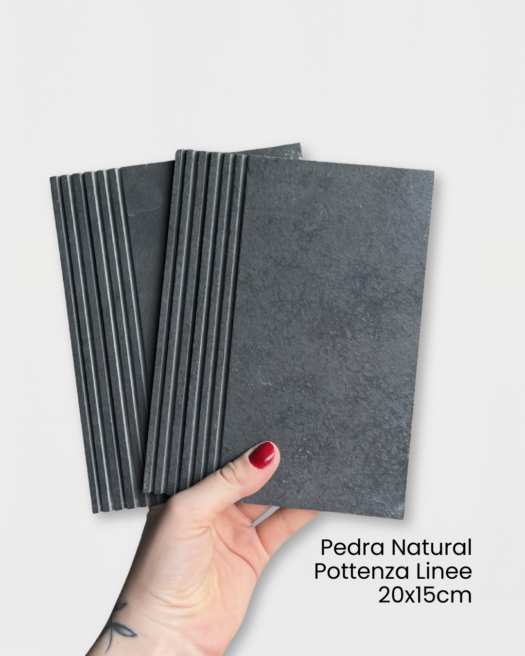 *Atenção: você receberá apenas 2 peças do Revestimento Natural Pottenza Linee para teste. Para comprar o metro quadrado, basta buscar por "Pottenza Linee", ou acessar a aba "Revestimentos"