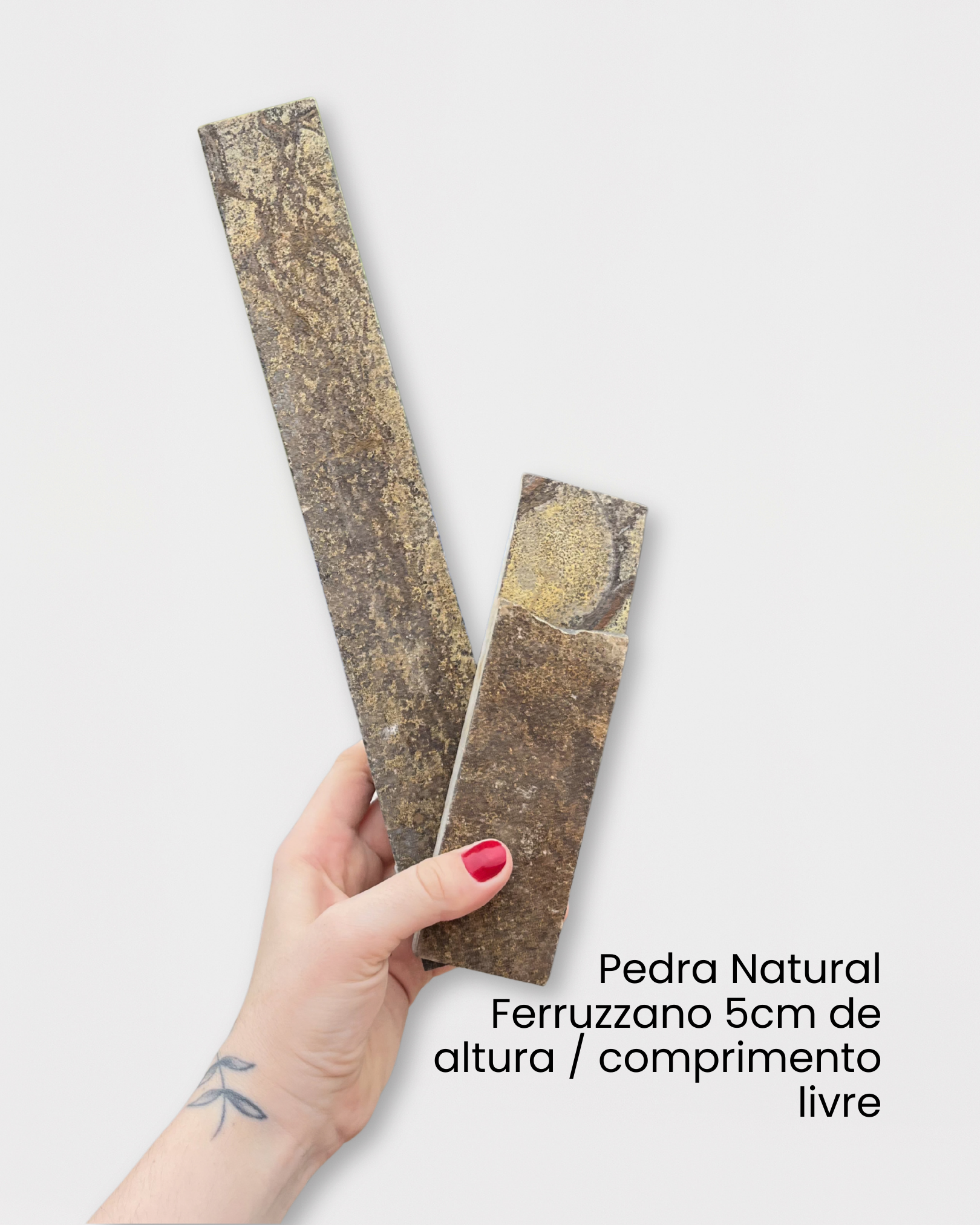 *Atenção: você receberá apenas 2 peças do Revestimento Natural Ferruzzano Filete para teste. Para comprar o metro quadrado, basta buscar por "Ferruzzano Filete", ou acessar a aba "Revestimentos"