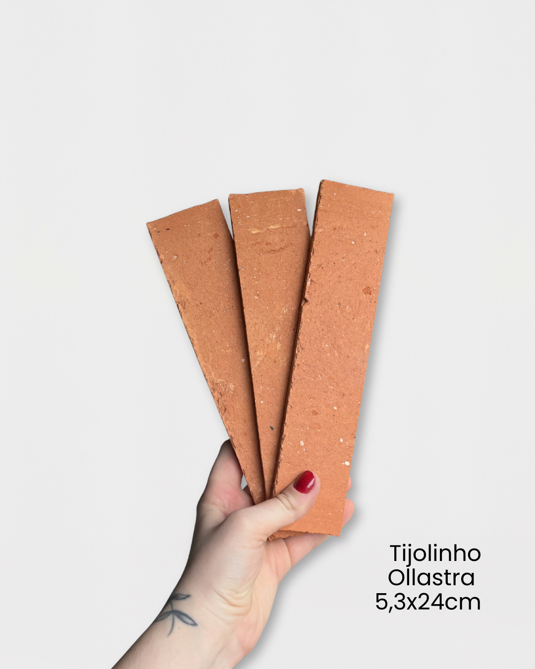 *Atenção: você receberá apenas 3 peças do Tijolinho em Cerâmica Natural Ollastra 5,3x24cm para teste. Para comprar o metro quadrado, basta buscar por "Tijolinho Ollastra 5,3x24cm", ou acessar a aba "Tijolinhos (bricks)"