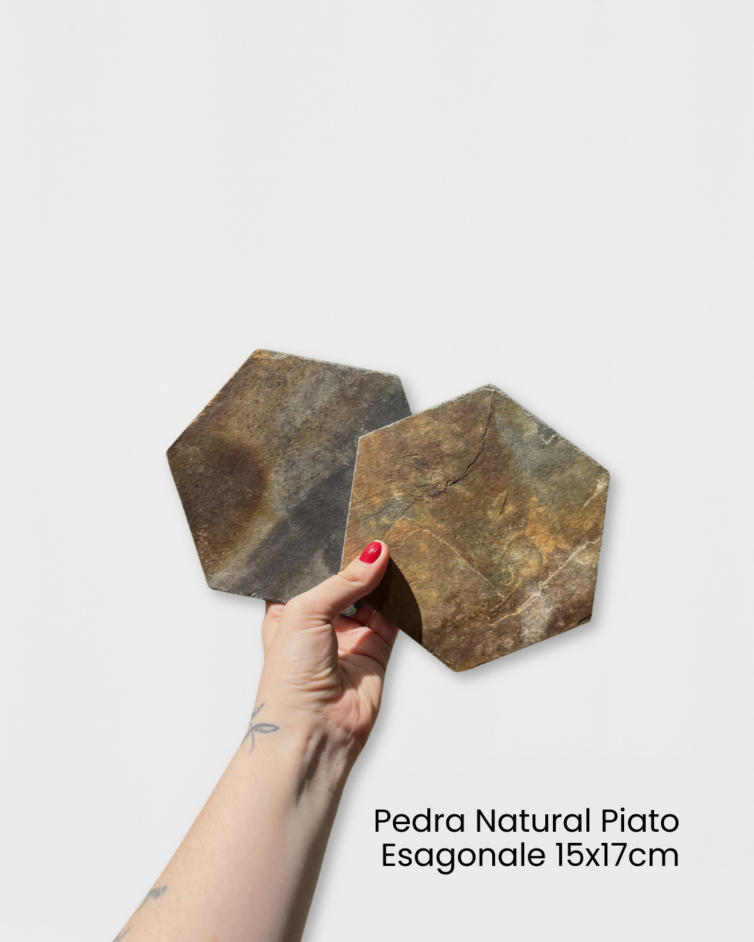 *Atenção: você receberá apenas 2 peças do Revestimento Natural Pottenza Linee para teste. Para comprar o metro quadrado, basta buscar por "Piato Esagonale", ou acessar a aba "Revestimentos"